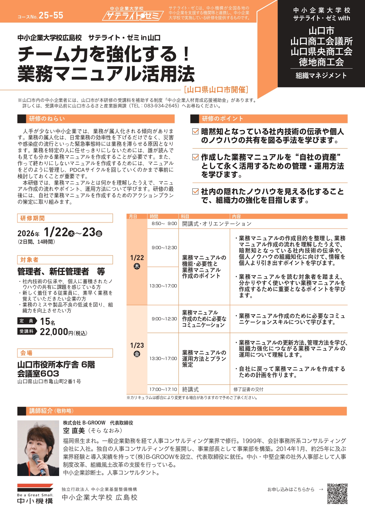 (サテライト・ゼミin山口)チーム力を強化する!業務マニュアル活用法(1月22日、23日)