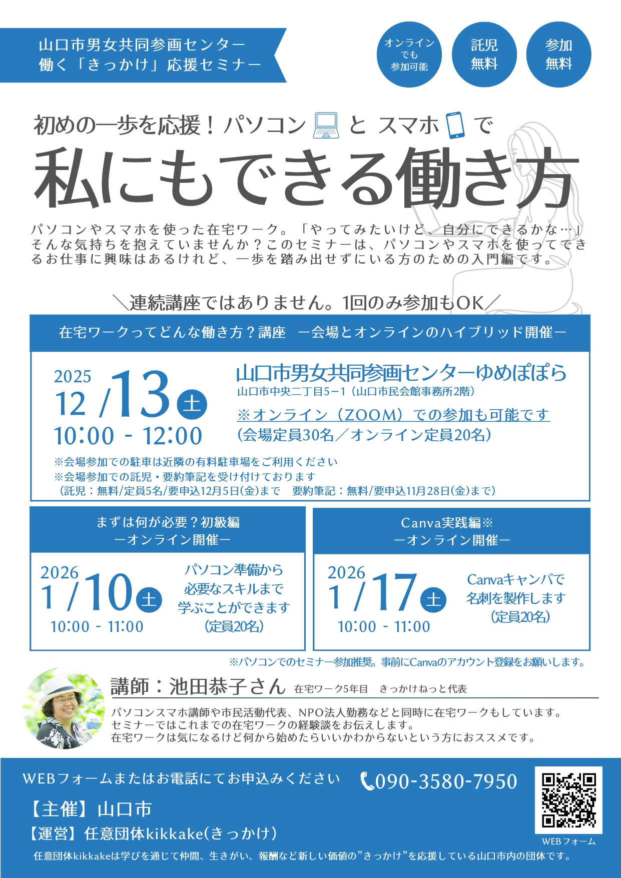 ゆめぽぽら講座(働くきっかけ応援セミナー)「初めの一歩を応援!パソコンとスマホで私にもできる働き方」(12月13日)