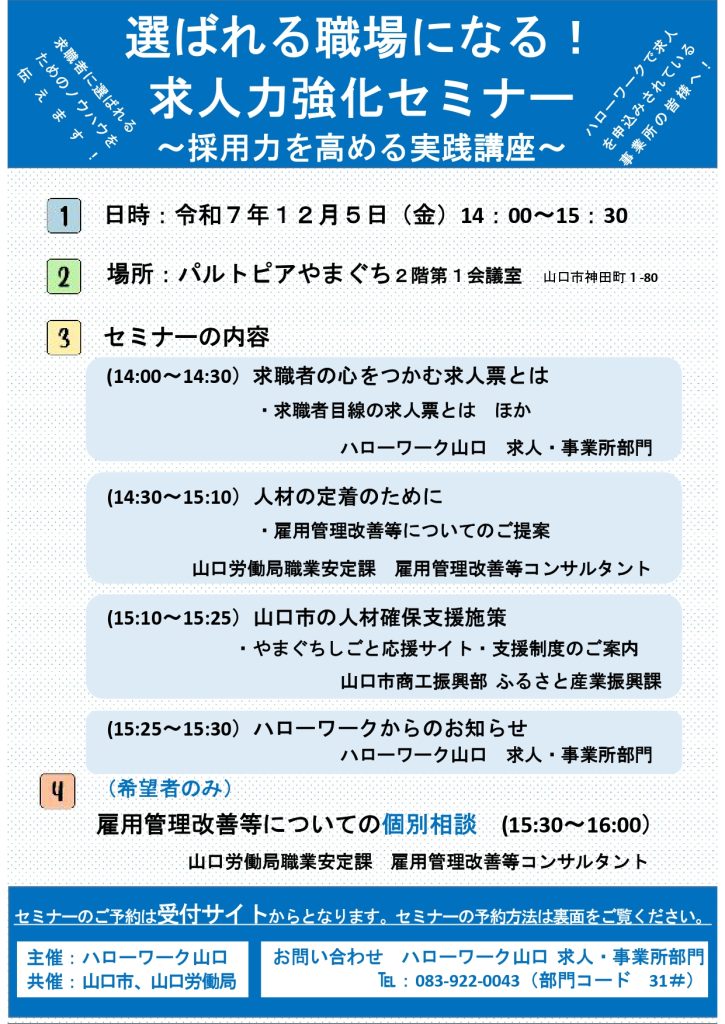 (ハローワーク山口)選ばれる職場になる!求人力強化セミナー(12月5日)