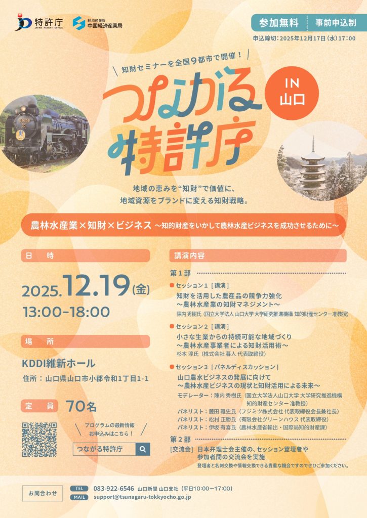 (特許庁・中国経済産業局)つながる特許庁in山口(12月19日)