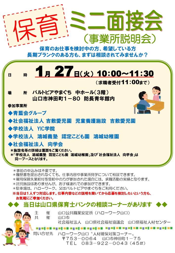 (ハローワーク山口)保育ミニ面接会(1月27日)