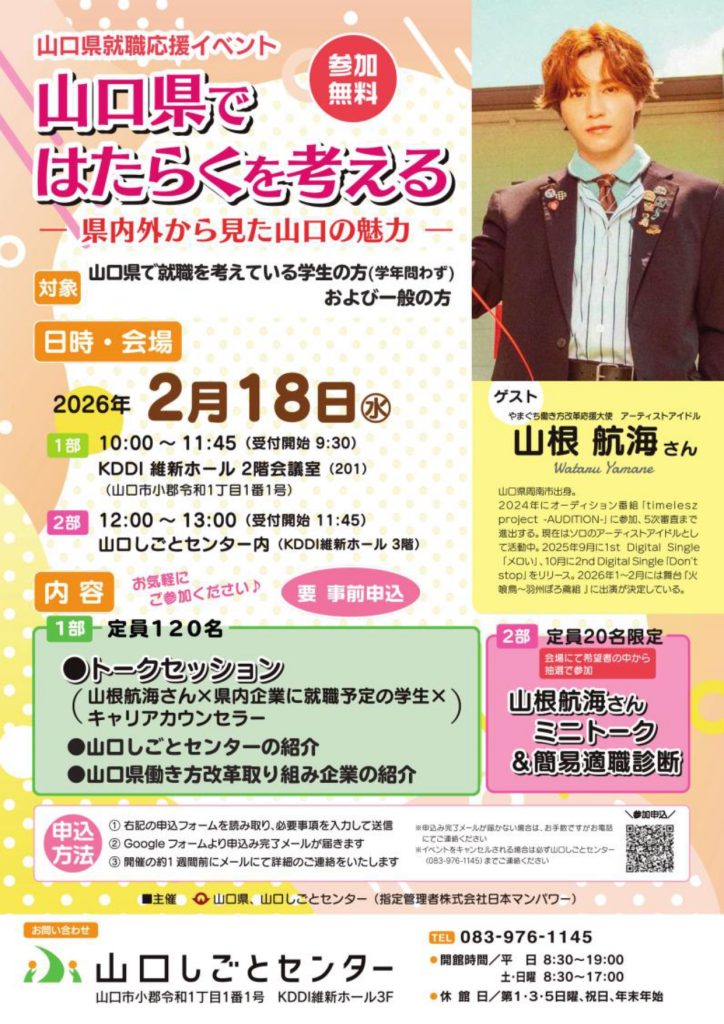 (山口県)就職応援イベント「山口県ではたらくを考える」(2月18日)
