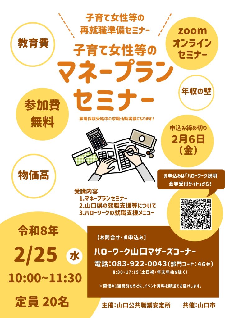 (ハローワーク山口)子育て女性等のマネープランセミナー(2月25日)